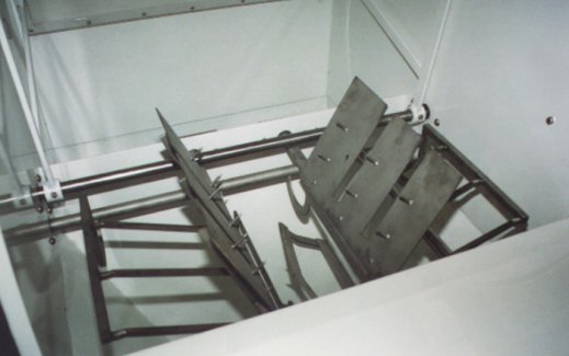 4. Sàn đỡ dựng lên, hất bao rỗng vào hệ thống gom và nén bao rỗng